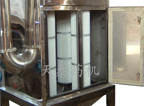 40B型吸塵粉碎機組由粉碎機、旋風(fēng)分離器、高效空氣過濾集塵器、平臺、控制箱等部分組成。適用于醫(yī)藥、化工、食品等行業(yè),粉碎干燥的脆性物料,是粉碎與吸塵為一體的新一代粉碎設(shè)備,它對軟化點低,粘度大的物料不宜選用本機。 本機組與粉碎物料相接觸的零件全部采用不銹鋼材料制造,有良好的耐腐蝕性,機架四周全部封閉,便于清洗,機殼內(nèi)壁全部經(jīng)機加工,達到表面平整、光滑。使藥品、食品、化工等生產(chǎn)更能符合國家“GMP”標準。