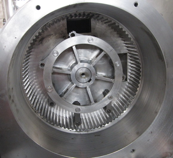改機(jī)由加料斗、分級輪、粉碎刀片、齒圈、粉碎電機(jī)、出料口、集裝箱、吸塵箱等部分組成,物料由加料斗進(jìn)入粉碎室,通過高速旋轉(zhuǎn)的刀片進(jìn)行粉碎,調(diào)節(jié)分級輪與分級盤的距離來達(dá)到要求的料繼續(xù)在粉碎室中粉碎。集裝箱布袋產(chǎn)生的粉塵由吸塵箱收集。該機(jī)組按“GMP”的標(biāo)準(zhǔn)設(shè)計(jì),結(jié)構(gòu)簡單、操作方便、噪音小、產(chǎn)量高,機(jī)器采用優(yōu)質(zhì)不銹鋼材料制造,粉碎過程中無粉塵飛揚(yáng)。