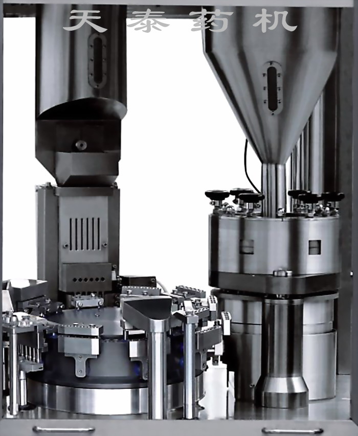1、創(chuàng)新了轉(zhuǎn)盤機(jī)構(gòu):2016年5月11日國(guó)家知識(shí)產(chǎn)權(quán)局頒發(fā)的使用新型專利證書(改變了一般充填機(jī)轉(zhuǎn)盤結(jié)構(gòu)復(fù)雜、密封性能差、粉塵易進(jìn)入轉(zhuǎn)盤內(nèi)等問題),創(chuàng)新的轉(zhuǎn)盤機(jī)構(gòu):穩(wěn)定性好、無論充填速度多快、運(yùn)行時(shí)間多長(zhǎng)、都沒有粉塵進(jìn)入轉(zhuǎn)盤內(nèi),裝拆模具快捷方便(15分鐘)減少了勞動(dòng)強(qiáng)度,在原基礎(chǔ)上提高功效三倍。安裝模具精準(zhǔn),上下模具孔同心度好、無偏差、達(dá)到了膠囊無插邊效果。 2、創(chuàng)新了充填機(jī)構(gòu):2016年5月11日國(guó)家知識(shí)產(chǎn)權(quán)局頒發(fā)的使用新型專利證書,該新型充填機(jī)構(gòu)優(yōu)點(diǎn)是:安裝拆卸清洗方便,有效提高了工作效率。‚方便快捷調(diào)節(jié)計(jì)量盤與銅墊片間隙,減少了漏粉現(xiàn)象,提高了裝量精度。改用了新型拖座,安裝了自動(dòng)回收藥粉結(jié)構(gòu),生產(chǎn)充填過程中漏出的藥粉自動(dòng)回收,增加了經(jīng)濟(jì)效益。 3、創(chuàng)新了藥粉與廢膠囊分離裝置:有效的回收流失的藥粉;厥蘸蟮乃幏劭芍苯映涮钍褂茫瑴p少了浪費(fèi),增加了經(jīng)濟(jì)效益。 4、膠囊關(guān)、開自動(dòng)控制,安全、便捷。 5、配有點(diǎn)動(dòng)控制系統(tǒng),便于裝拆清洗模具、安全方便、快捷。 6、配有自動(dòng)清潔模具系統(tǒng),上下模具運(yùn)行到第十工位時(shí),自動(dòng)清洗上下模具孔,清洗后的上下模具孔內(nèi)無粉塵。有效提高了播囊效果。 7、配有門控及機(jī)械故障安全系統(tǒng),自動(dòng)報(bào)警、自動(dòng)停機(jī)。 8、料斗缺囊缺粉時(shí)自動(dòng)報(bào)警、自動(dòng)停機(jī)功能。 9、人機(jī)界面功能齊全,生產(chǎn)運(yùn)行時(shí)自動(dòng)顯示計(jì)數(shù)功能,配有打印機(jī),(生產(chǎn)日期、生產(chǎn)批號(hào)、生產(chǎn)數(shù)量等)功能。 |