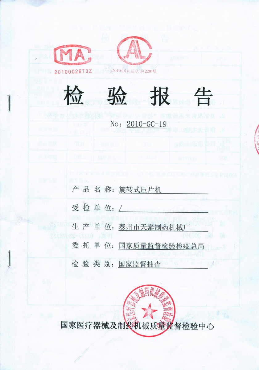 ZP-9旋轉(zhuǎn)式壓片機(jī)抽檢報告