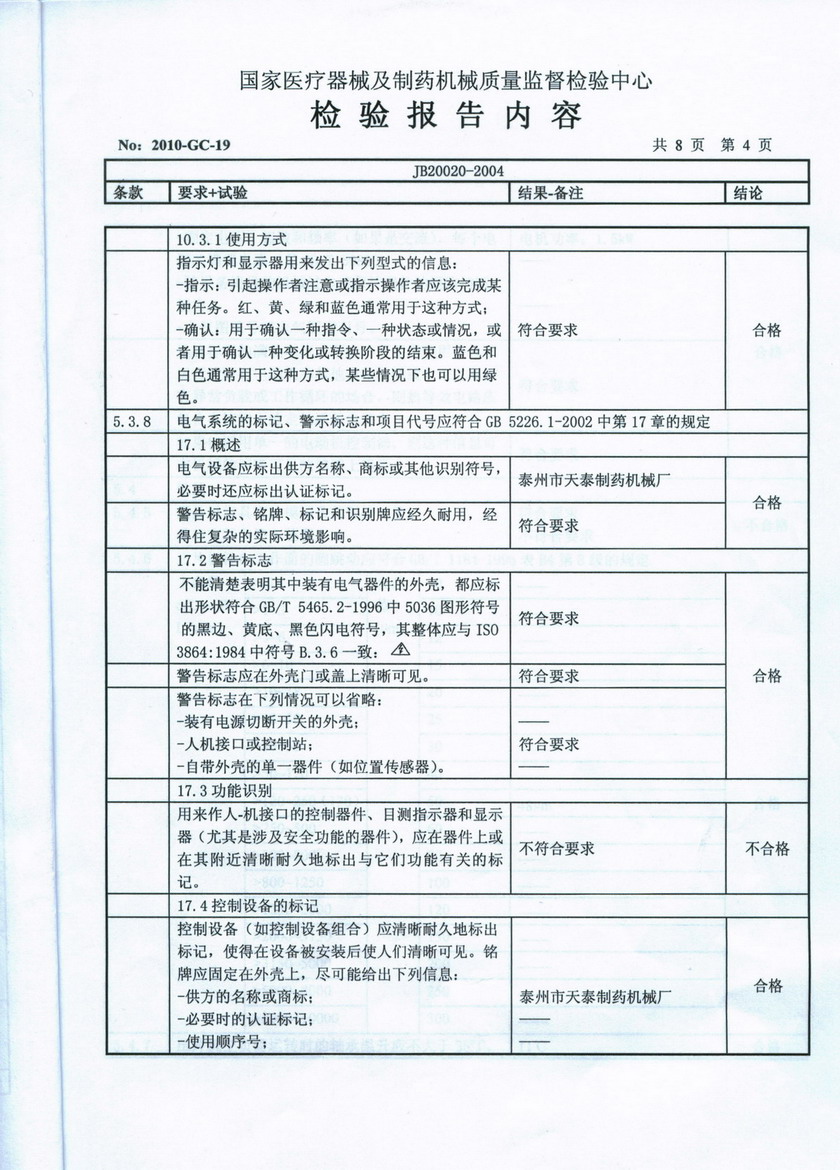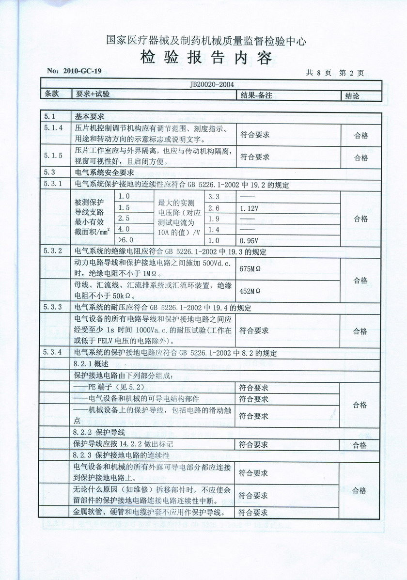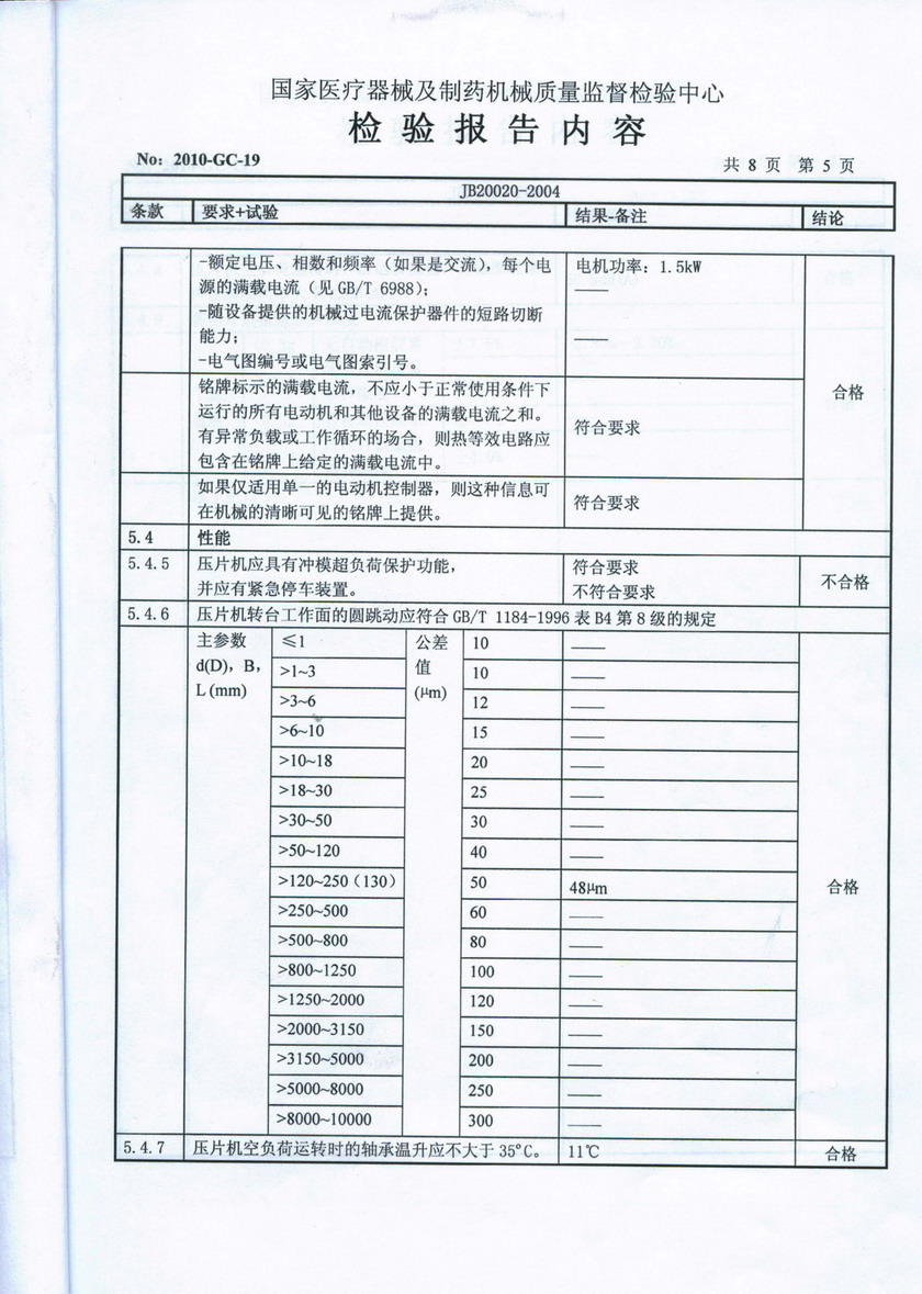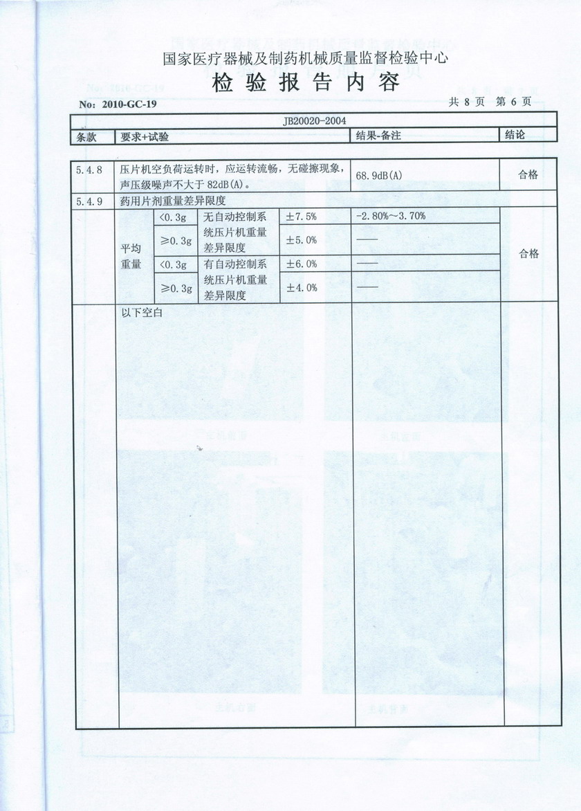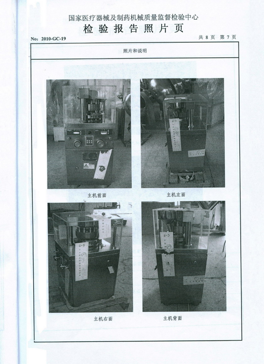 天泰牌ZP-9旋轉(zhuǎn)式壓片機(jī)復(fù)檢符合JB 20020-2004標(biāo)準(zhǔn)要求